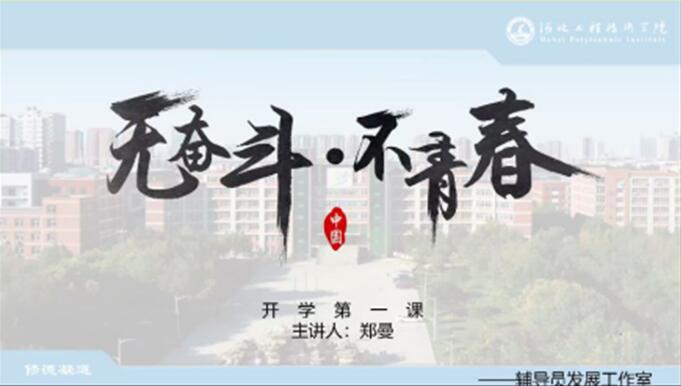 辅导员首先进行了详细的自我介绍,使同学们对辅导员有一个初印象。本次主题班会围绕“走进河工”“适应老员工活”“奋斗河工”三个模块开展。在走进河工的开始,辅导员先通过视频以及讲解让同学们了解了河工的校训、校风、大学精神,增强了同学们的知校爱校荣校意识。接着通过大学前生活和大学后生活的对比,使同学们了解到高中和大学在学习方式、人际交往等方面的不同之处。