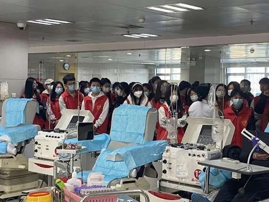在血站工作人员的带领下,大家依次参观科普馆、发血科、献血大厅、成分科以及检验科。按照采供血工作流程参观了解血站的血液采集、成分制备、血液检测、血液储存发放等工作流程。整个流程让大家生动地了解到一袋血从采集到制备,再到发往医院、输注到病患体内的“爱心之旅”。