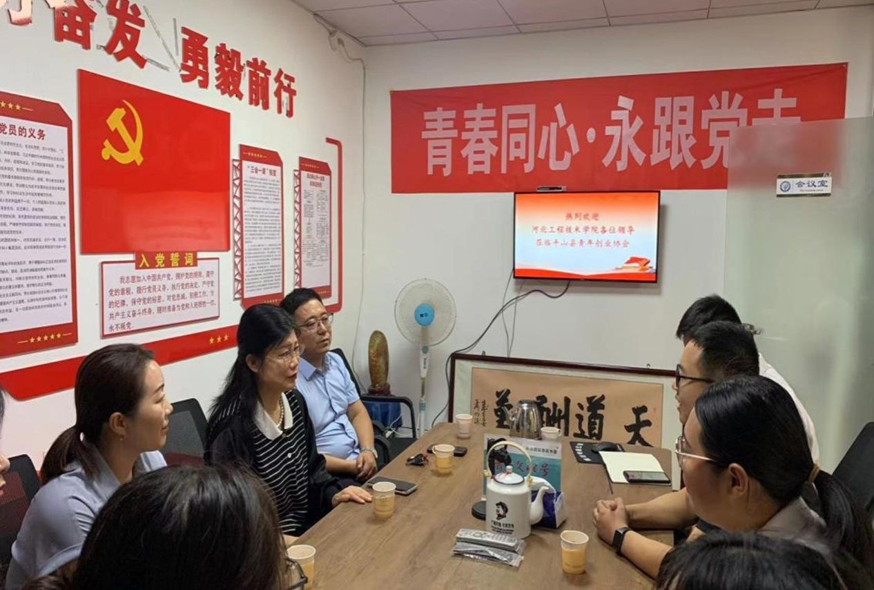 会上,公司领导与共青团平山县委书记韩强、共青团平山县委副书记郄晓兴、平山县青年创业协会会长付立新、平山县青年志愿者协会会长茹志才在老员工未来发展前景、员工人才培养意见建议、基地建设、学研融合等方面进行了深入交流。平山县青年创业协会会长付立新对青年创业协会的机构设置、人员组成、协会发展情况,近年来平山县对青年创业、乡村振兴直播等方面的重点工作及政策等情况进行了介绍;软件公司赵冬梅经理介绍了公司的基本概况、团队建设、人才培养及科研发展取得的成就,党总支书记、学管副经理王亚杰介绍了毕业生基本情况,了解了该协会的合作企业,提出毕业生返乡就业创业计划。最后,赵经理对平山县青年创业协会的支持表示感谢,希望双方继续加强合作,以就业实习实践基地为契机,将双方的优势资源有效结合,促进共赢发展。