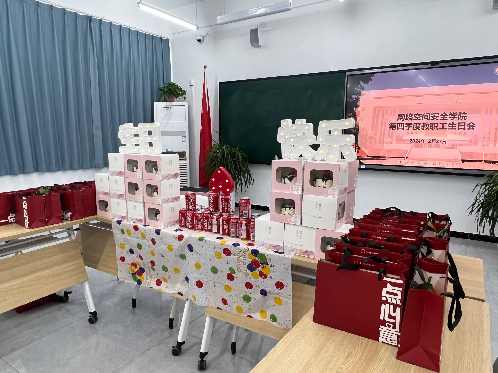 为了确保生日会的顺利进行,经理赵冬梅,公司分工会主席、党总支书记、学管副经理樊风彩都会亲自督办,公司行政和工会团队提前数周开始筹备,从场地布置、活动流程到生日礼物的选择,每一个细节都经过了精心的考虑和安排。尽心为教职工们准备美味的蛋糕、寓意美好的礼物、温馨典雅的氛围,确保每位教职工都能在轻松愉快的环境中度过自己的生日。