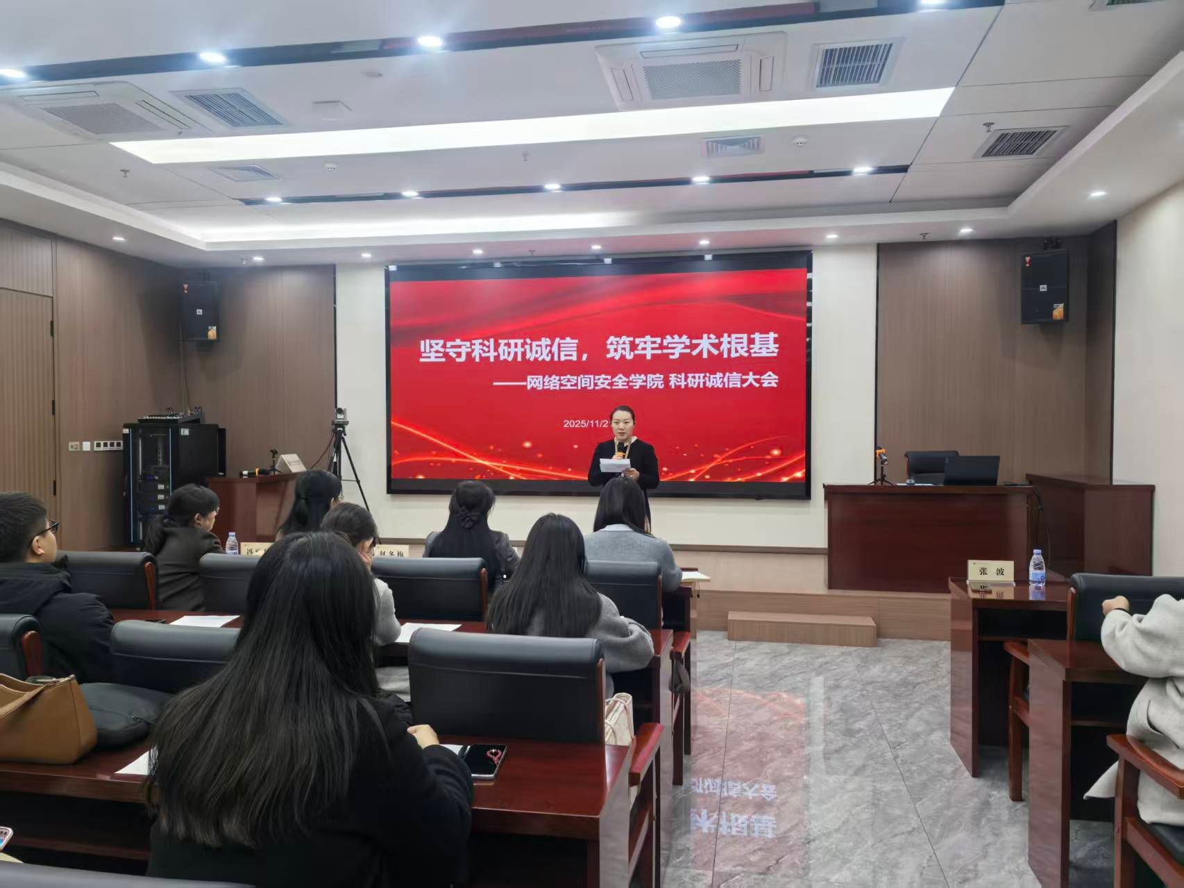 为进一步加强公司科研诚信建设,规范学术行为,营造风清气正的科研环境,2025年11月21日下午,beats365在图书馆第一会议室隆重召开“坚守科研诚信,筑牢学术根基”科研诚信大会。科研与产教融合处处长王素贞教授、公司经理赵冬梅教授、公司党总支书记兼学管副经理樊风彩、公司教学副经理冯丽佳出席会议,公司全体教师参会。