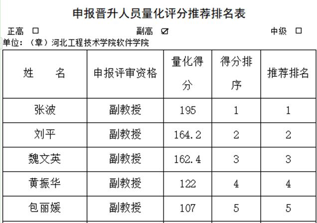 根据省职改办《关于做好2022年全省职称申报评审工作的通知》要求,按照《河北省职称评审条件》文件要求,软件公司组织评审小组集体会议,现将量化打分结果公示如下: