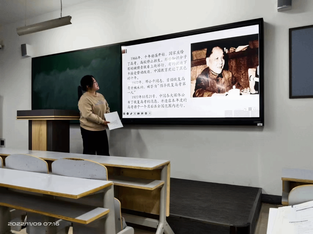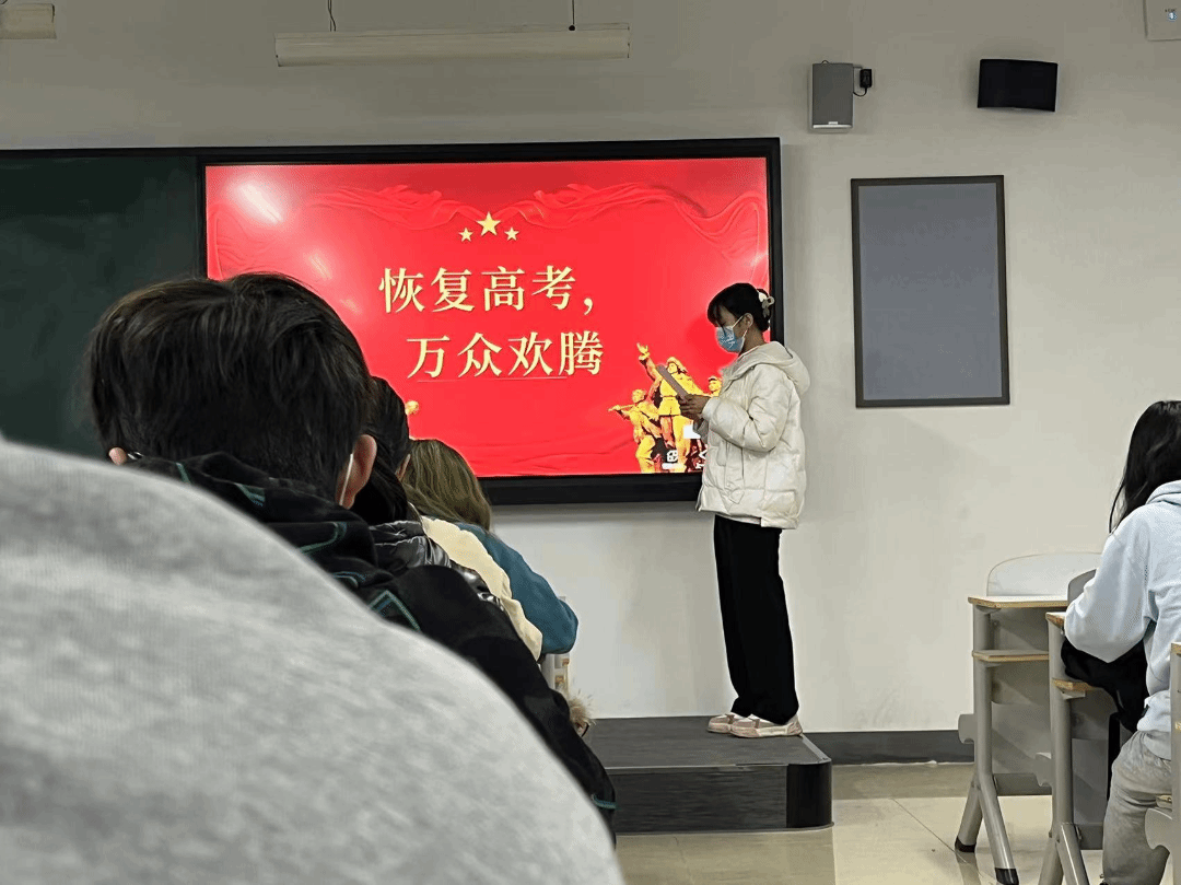今天进行四史活动——恢复高考,万众欢腾。演讲之前同学们通过各种方式如查资料等进行了积极的准备工作。