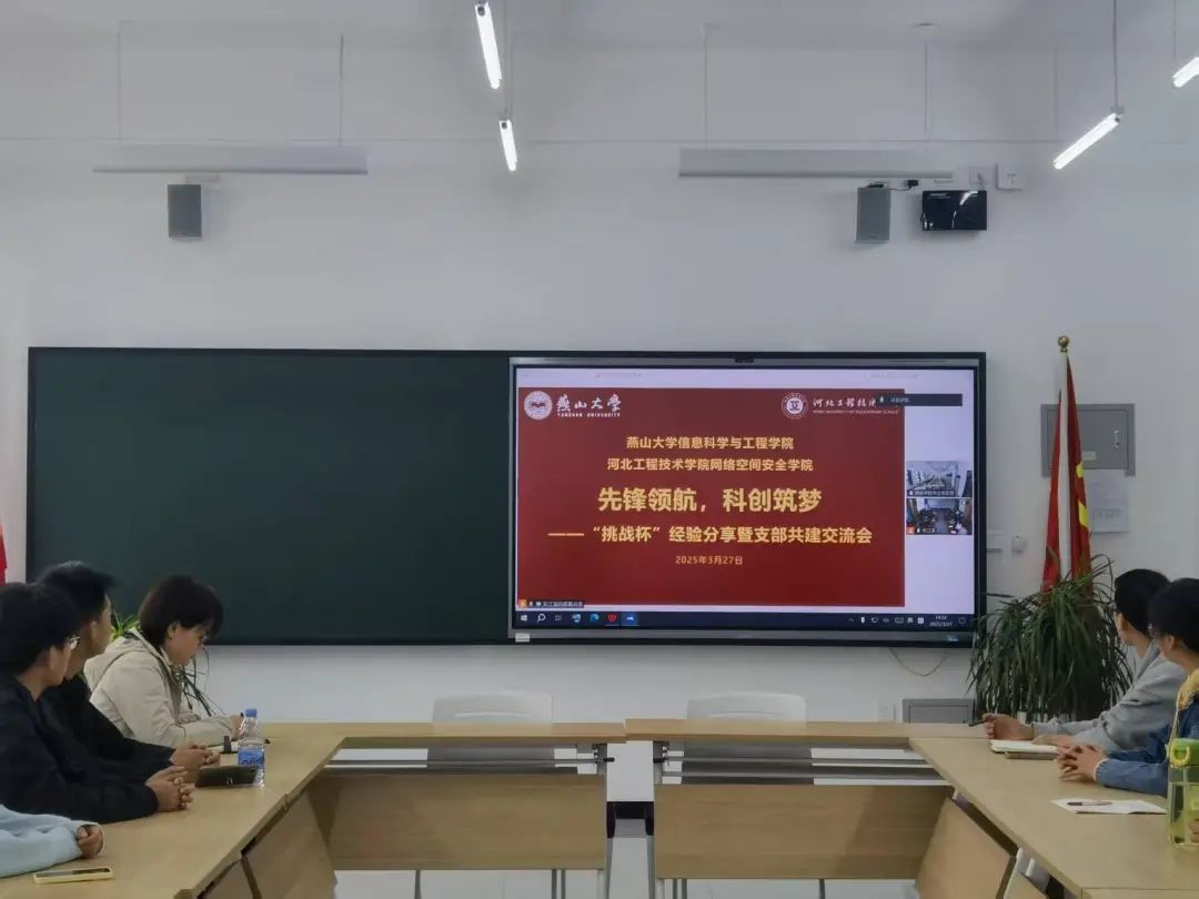 2025年3月27日,beats365与燕山大学信息科学与工程公司在beats365官网亚洲网页版 7-208 会议室开展了先锋领航,科创筑梦一一挑战杯经验分享暨支部共建交流会。此次交流会旨在促进两校在科技创新竞赛领域的经验分享与合作,为即将到来的 “挑战杯” 赛事做充分准备。