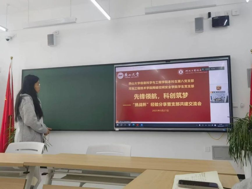 两支部代表分别介绍了各自公司在学风建设以及科技创新活动方面的基本情况。随后燕山大学信息科学与工程公司的王征宇同学作为优秀参赛代表,分享了自己宝贵的参赛经验。王征宇同学所在团队在过往 “挑战杯” 赛事中成绩斐然,王征宇同学谈到,选题至关重要,要紧密结合社会重大课题及现实问题,从国家重大需求出发,以此为切入点,使得项目具有高度的现实意义和应用价值。在项目策划阶段,一定要制定详细且合理的计划,还特别强调了团队组建的关键作用,一个优秀的团队需要不同专业背景的成员,大家各有所长,优势互补,才能全方位推动项目前进。