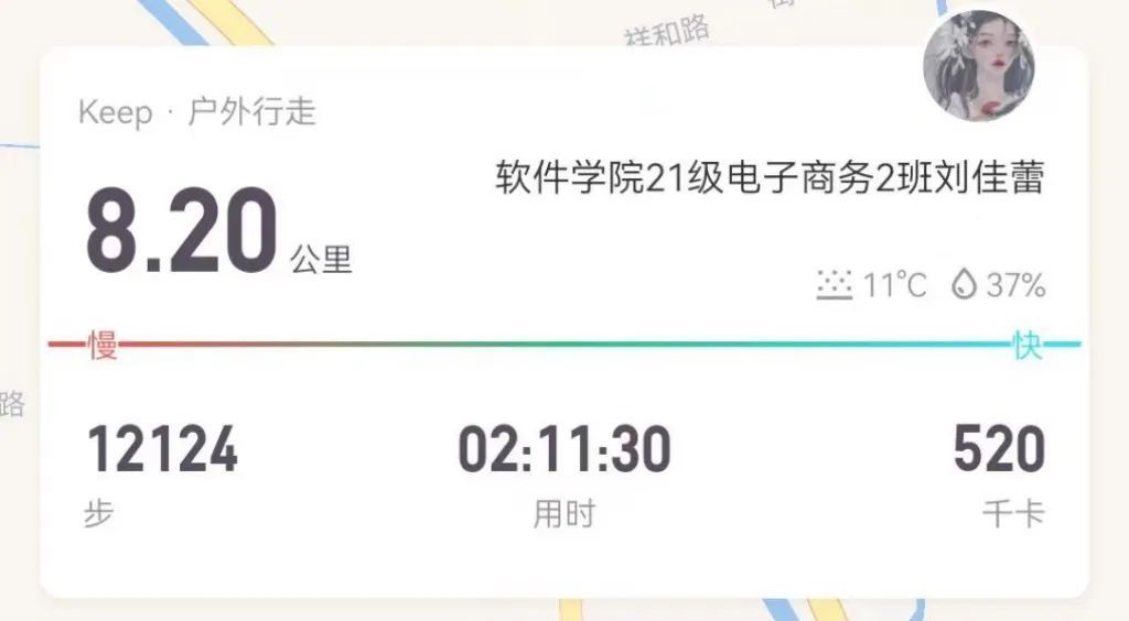 此次活动选择了微信、健康校园和keep等APP作为打卡平台,由APP记录下运动时间和运动步数。同学们踊跃参加,在运动打卡期间互相监督和鼓励。看着校园的美好环境,呼吸着清新的空气,畅快淋漓地跑一场,自在行于天地间,以我生命之健美,展中华之雄姿。春光中,晨曦里,有温暖相伴,我们并肩前行。