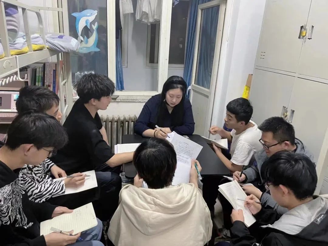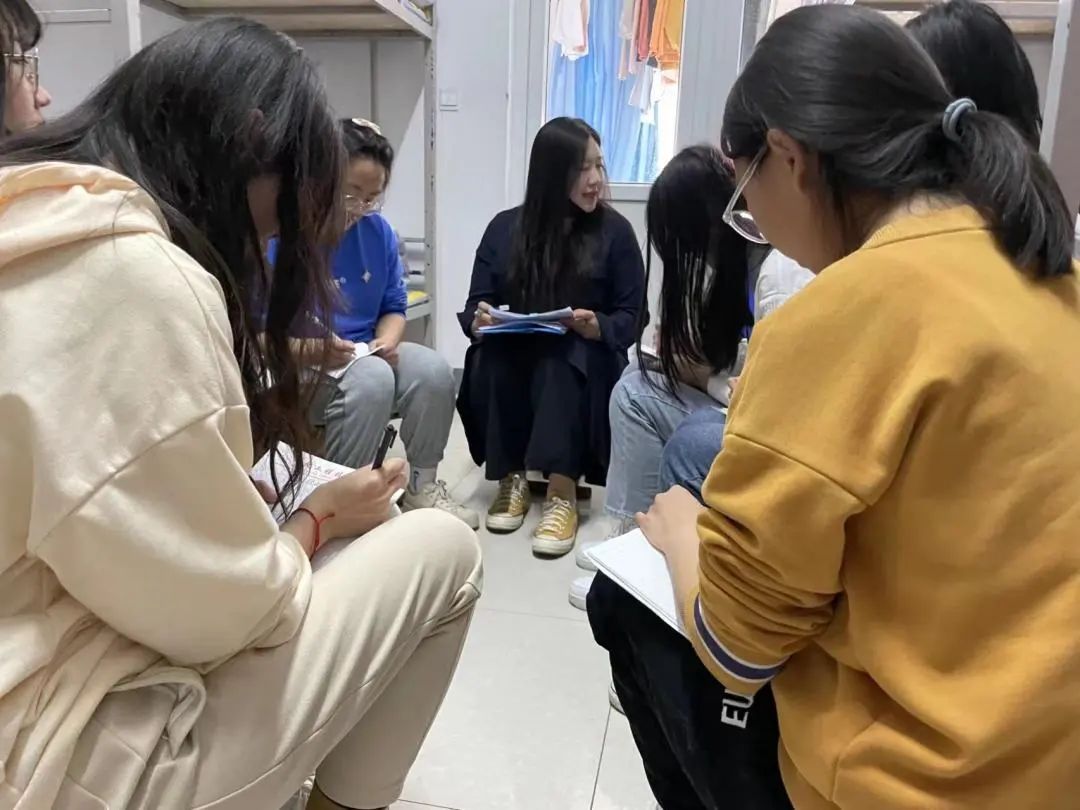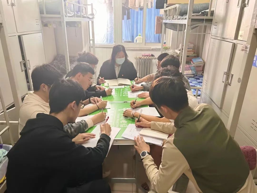 辅导员王峥老师走进宿舍,围绕党的二十大报告中的新观点、新论断、新思想,带领同学们对“一个中心任务、第一要务、两个‘行’、三个‘务必’”等内容进行了深入学习。此外,辅导员还结合宿舍安全、心理健康和习惯养成等方面与同学们进行了深入交流,详细地询问了同学们的生活和学习情况,耐心地解答同学们提出的各种问题,帮助同学们制定合理学习计划,引导同学们充分利用各种学习资源,使同学们努力成为高素质全面型人才。