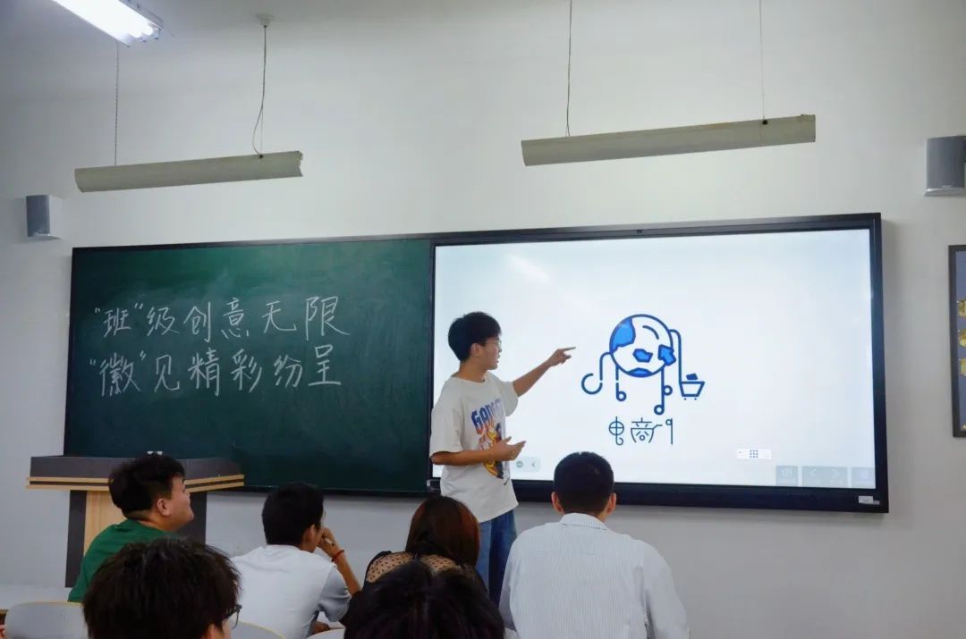 通过一周时间的设计与准备,同学们通过自己丰富的灵感与多彩的展现力,运用多变的线条和丰富的色彩,通过使用制图软件等,设计了一个个富有特别意义的班徽,表达了同学们对自己所在专业的了解,展现了同学们对理想与梦想的追求和渴望。每个班级的代表人依次上台介绍自己及团队的设计灵感,讲解班徽的含义。台下的同学们都聚精会神的听讲。图片