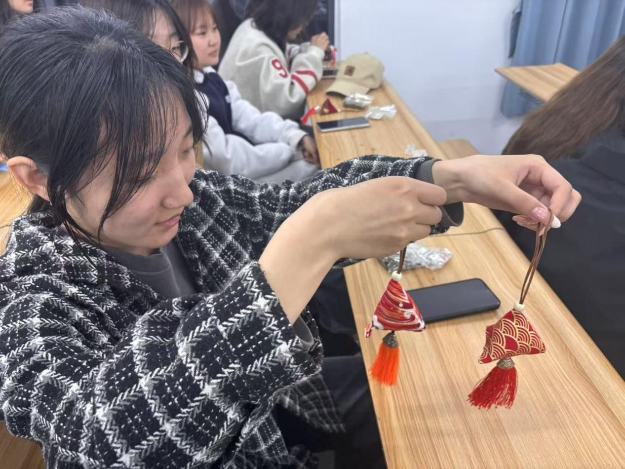 制作环节,社团工作人员将材料分发给员工们。第一项是进行布料的裁剪,他们小心翼翼地按照模板剪出形状,设计香囊的外形。填充香料也是重要一步,大家仔细地将各种香料混合,感受着春天的气息。在缝合过程中也遇到了不少困难,但在同学的帮助下,他们逐渐掌握了技巧。系上精美的丝线,一个个色彩斑斓、造型各异的香囊便呈现在眼前。