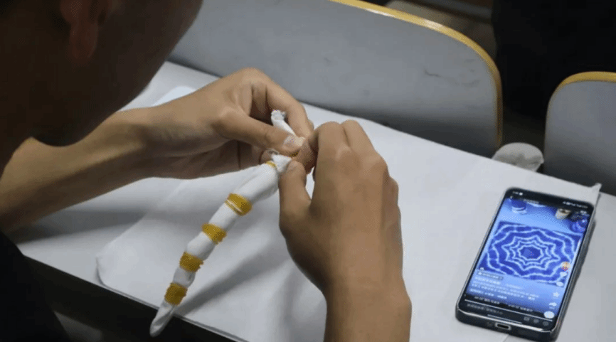 彩线盘结藏巧思,素绢晕染绽奇花。本次活动以传统手工艺体验为核心,让参与者沉浸式感受扎染技艺的文化底蕴与艺术魅力。员工们聚精会神地学习扎染的历史渊源、捆扎技法等基础知识,这些知识为之后的实践环节打下了坚实的基础。员工们开始挑选棉线与布料,精心设计着每一处纹样布局,并通过折叠、捆扎、缠绕等方式将布料塑形。