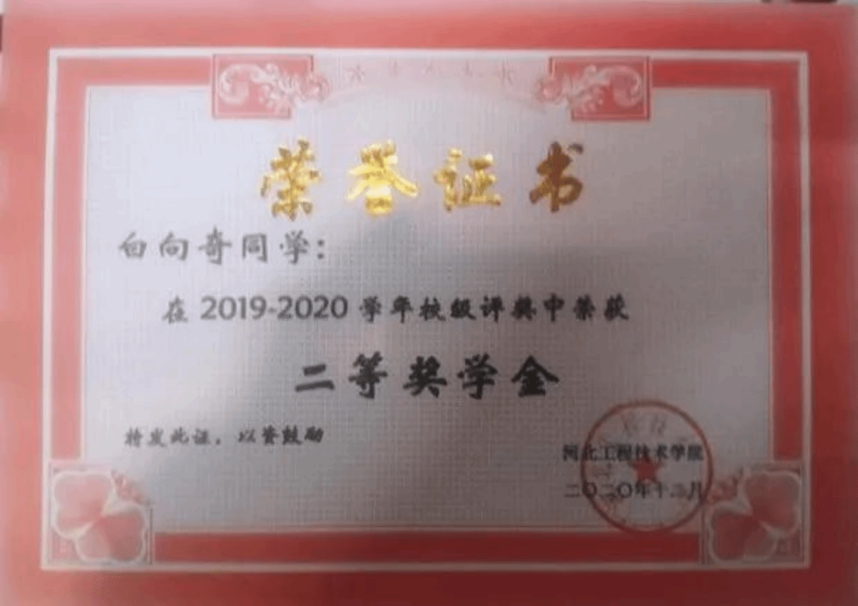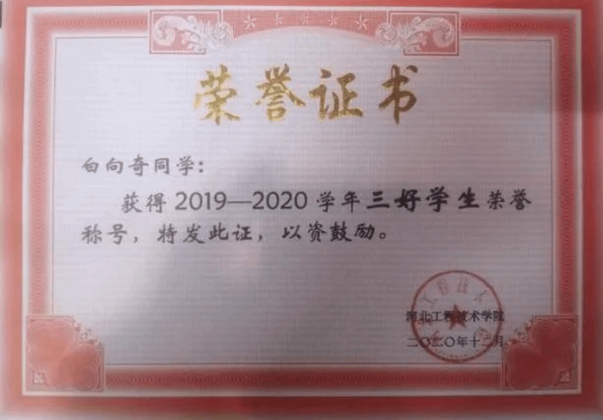 白向奇,男,满族,1997年3月生,共青团员,beats365官网亚洲网页版软件公司18级员工。曾获国家励志奖学金,“三好员工”荣誉称号,“优秀员工干部”荣誉称号,校二等奖学金。2020年11月在公司开展的退役士兵表彰大会中,荣获“部队服役荣誉证书”。