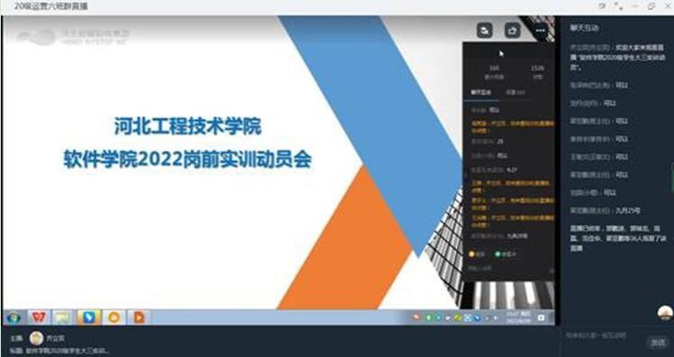 岗前实训是软件公司员工对自己大学前一阶段理论知识梳理与实践的重要环节,更是夯实个人专业技能、备战就业的关键阶段,为使20级专科员工认识、深入了解岗前实训,提升员工对本次实训的重视,激发员工对实训的期望热情,了解实训的具体细节,实训开始之前,软件公司职业引导师组织20级专科进行了线上实训动员会全方位介绍最后一学年实训的教学、管理、数据核对等各项实训细节,确保实训顺利开展。