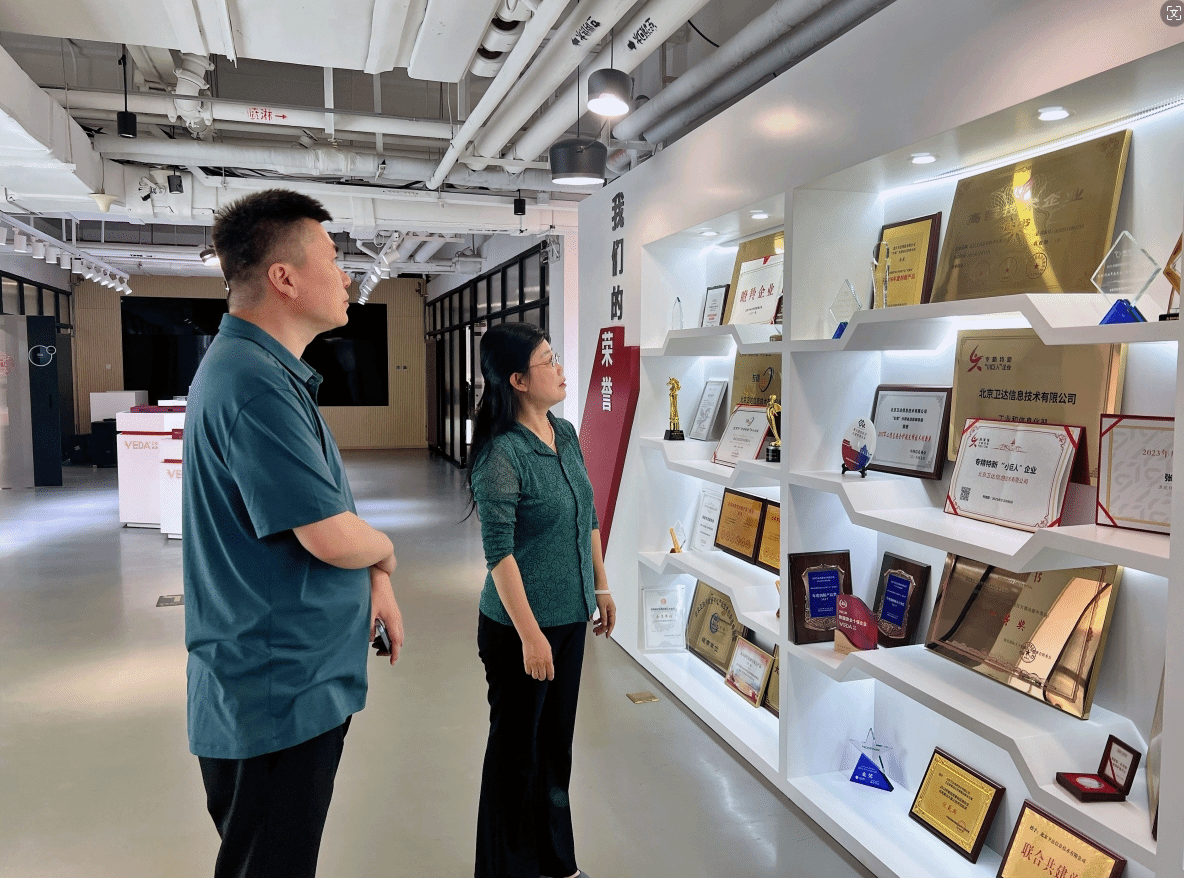 随后,双方就未来的校企合作、人才培养、产教融合等方面进行了深入交流。授牌仪式结束后,赵经理一行在张董事长的带领下,参观考察了卫达信息的办公环境和荣誉展厅。